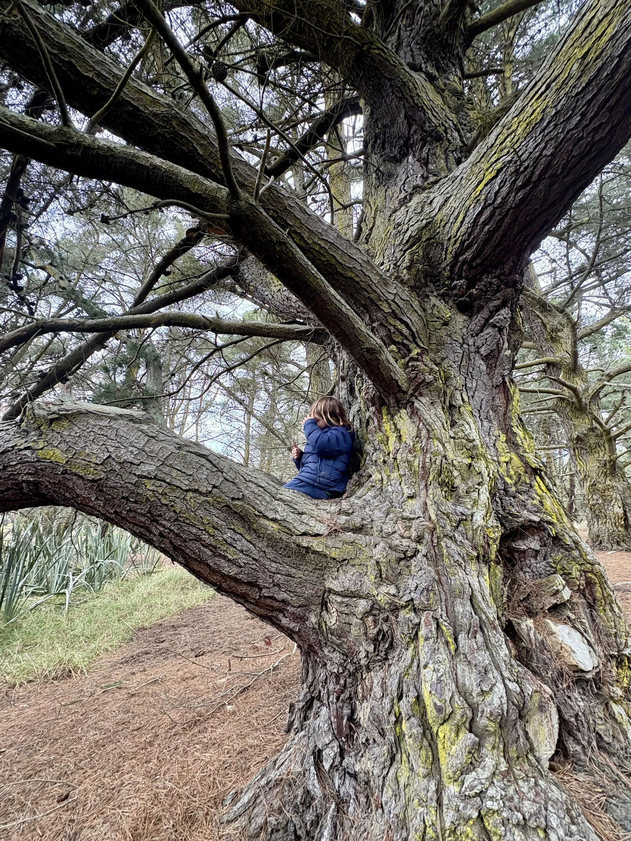 Make sure to stop and climb the pine trees for a bit. Always check for safety first, like dead branches and wind levels for example.